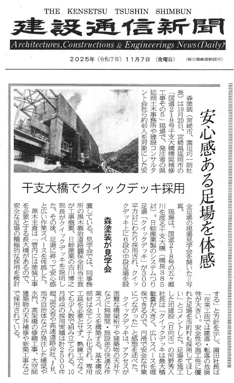 先日開催した現場見学会の模様が建設通信新聞に掲載されましたのでご紹介いたします。
